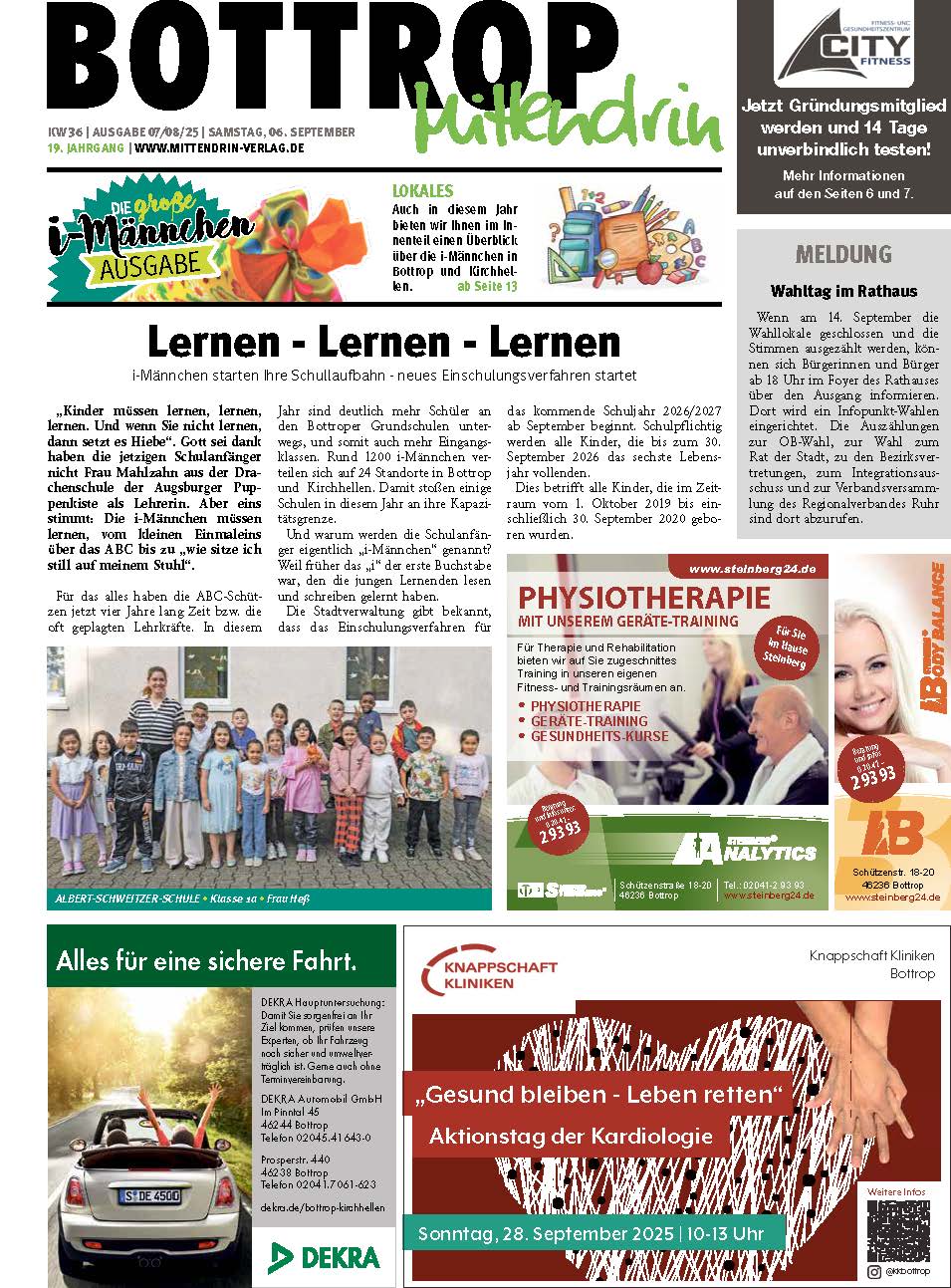Mit “Mittendrin!” ist Anfang August 2006 die erste Wochenzeitung des Mittendrin Verlages auf den Bottroper Lokalmarkt gekommen, die dazu beitragen soll, der zeitungsinteressierten Leserschaft in der Region mehr Vielfalt und umfassende Informationen zu aktuellen Themen zu bieten.